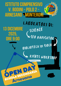 13 Dicembre - Open day della secondaria di primo grado per i plessi di Monteroni - Arnesano.