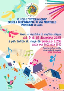 L'istituto comprensivo polo2 di Monteroni - Arnesano invita a visitare la scuola dell'infanzia di via Montello a Monteroni.