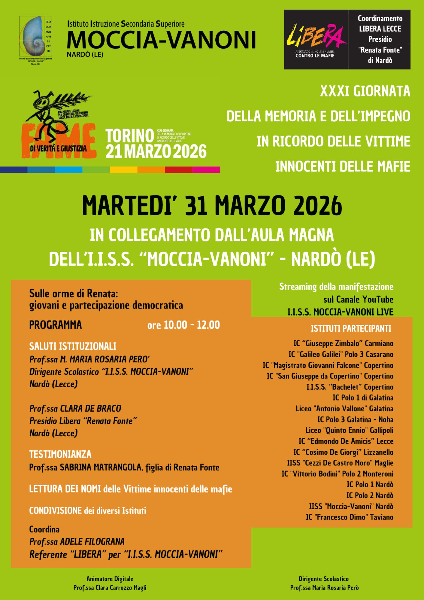 Martedì 31 marzo 2026. In collegamento dall'aula magna dell'IISS "Moccia Vanoni" - Nardò (Lecce)
